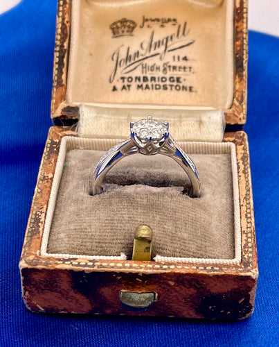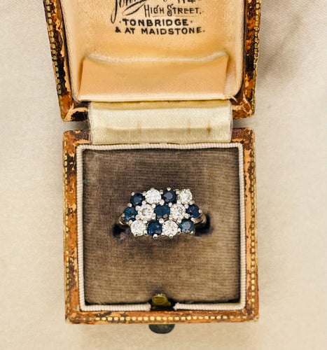1960s Blue Sapphire and Diamond Ring in 18ct White Gold